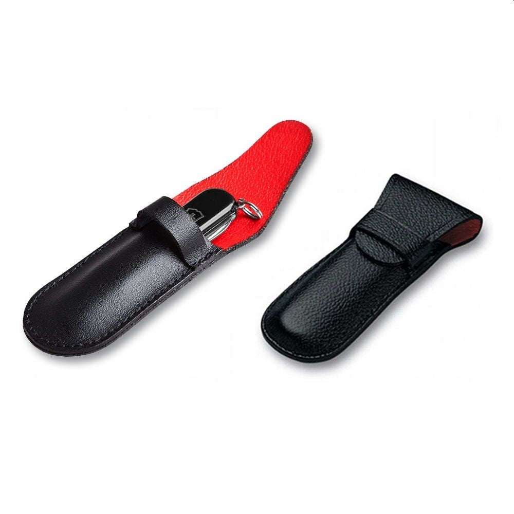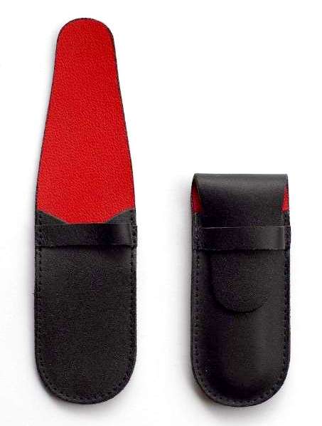 Futrollë lëkure e zezë e dyfishuar në të kuqe. Futrolle për thikë xhepi 1 deri në 2 shtresa