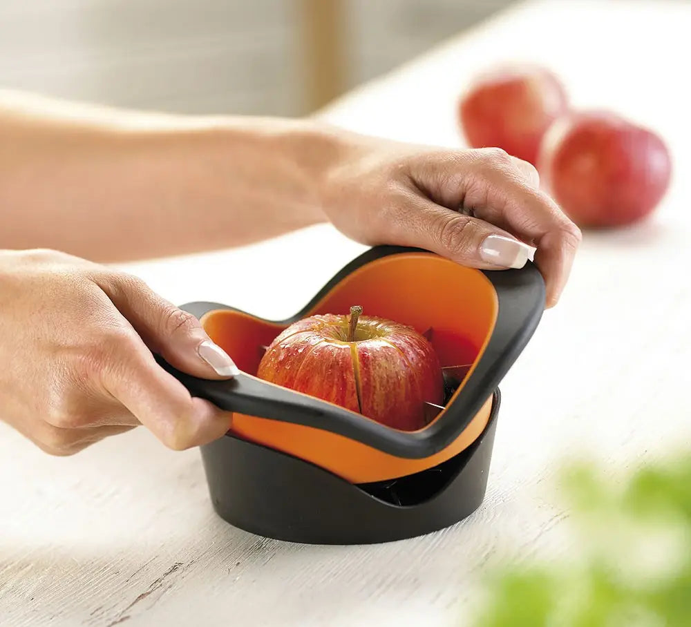 Ky është një model krejtësisht i ri dhe ekskluziv i thikës, i krijuar posaçërisht për prerjen e mollëve. Tani është e mundur të priten mollët në pjesë të barabarta me një lëvizje! Thika e pret një mollë në 8 pjesë të barabarta, duke hequr thelbin. Falë stendës, molla e prerë në feta mund të shërbehet në tavolinë menjëherë pas prerjes.
