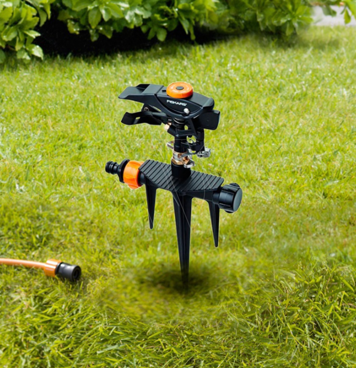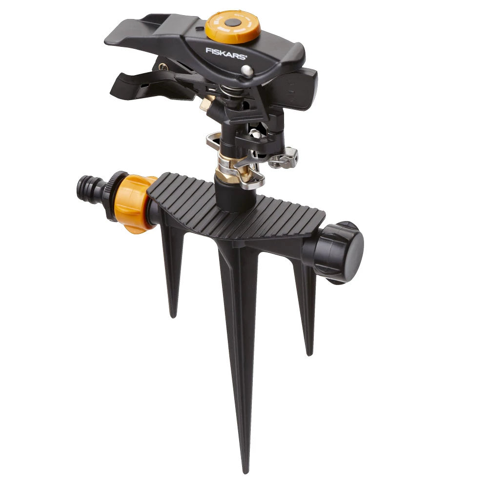 Spërkatësja e sektorit Fiskars në kunja metalike e bën të lehtë ujitjen e kopshtit. Duke ndryshuar pozicionin e dorezës së kontrollit të spërkatësit, mund të kontrolloni diapazonin e spërkatjes deri në Ø 26 metra. Mund të rregulloni gamën e spërkatjes nga pjesërisht në 360° rreth spërkatës, për ujitje me efikasitet të ujit kudo në kopsht.